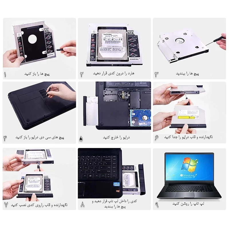 اتصال سریع در لپ تاپ | افزایش ظرفیت ذخیره سازی | سازگاری با لپ تاپ های مجهز به محفظه نوری با ضخامت 12.7 میلی متر