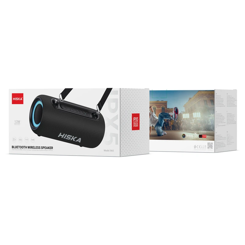 اسپیکر هیسکا مدل B65 یک اسپیکر باکیفیت و قابلحمل است که با امکانات متعدد خود، گزینهای مناسب برای استفاده در محیطهای مختلف به شمار میآید. این اسپیکر از بلوتوث نسخه 5.3 بهره میبرد و امکان اتصال بیسیم به دستگاههای مختلف را فراهم میکند. دو بلندگوی 3 اینچی با قدرت RMS معادل 13 وات (4 اهم) و توان پیک 26 وات (4 اهم) کیفیت صدای فوقالعادهای را ارائه میدهند.