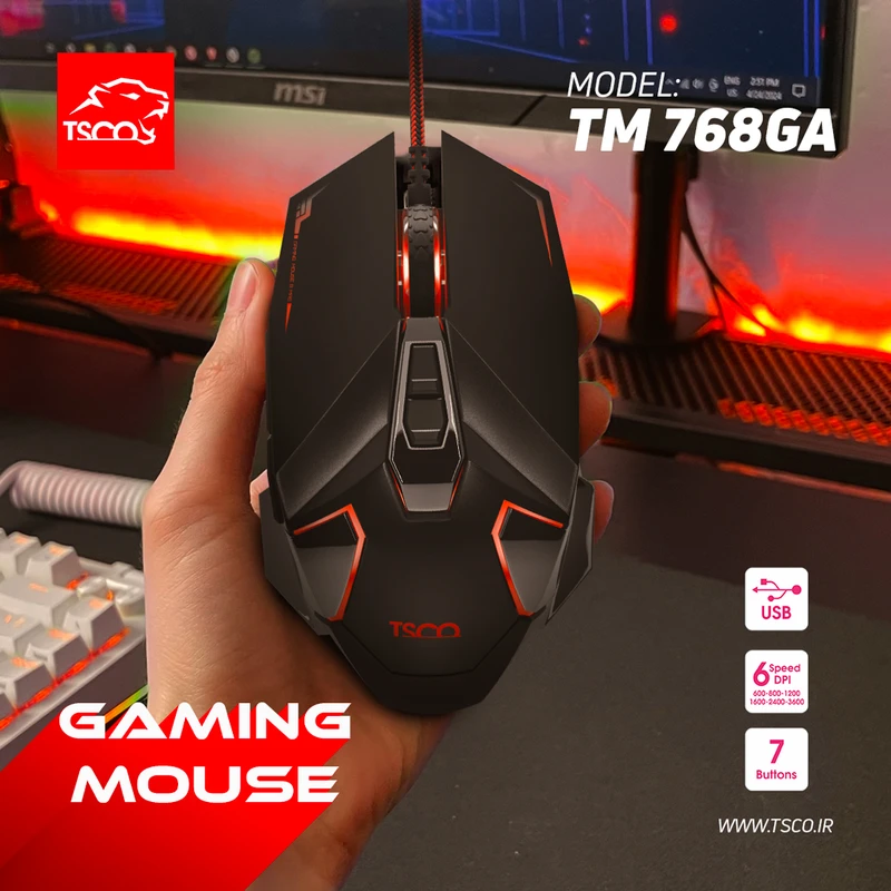 ماوس TM 768GA باقابلیت تغییر DPI از 600 تا 3200، امکان تنظیم دقت حرکت ماوس را بر اساس نوع فعالیت فراهم میسازد. بهطور پیشفرض روی 800 DPI تنظیم شده، اما بسته به نیاز میتوان آن را روی 1200، 1600، 2400 یا حتی 3200 تنظیم کرد. از نظر دوام، سوئیچهای ماوس تا 3 میلیون بار کلیک تضمین شدهاند که نشاندهنده طول عمر بالا و کیفیت ساخت قابلاعتماد آن است.